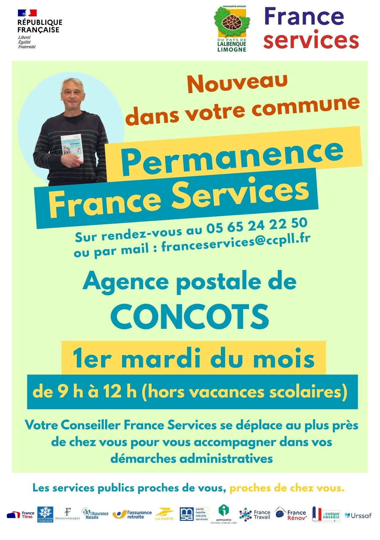 Permanence France Services à l'agence postale de Concots, le premier mardi de chaque mois, de 9h à 12h (hors vacances scolaires) !