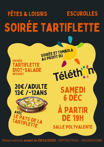 Soirée Tartiflette & Tombola du Téléthon à Escurolles