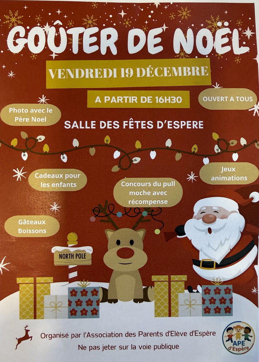 GOUTER DE NOËL de l'APE d'Espère : Vendredi 19 Décembre