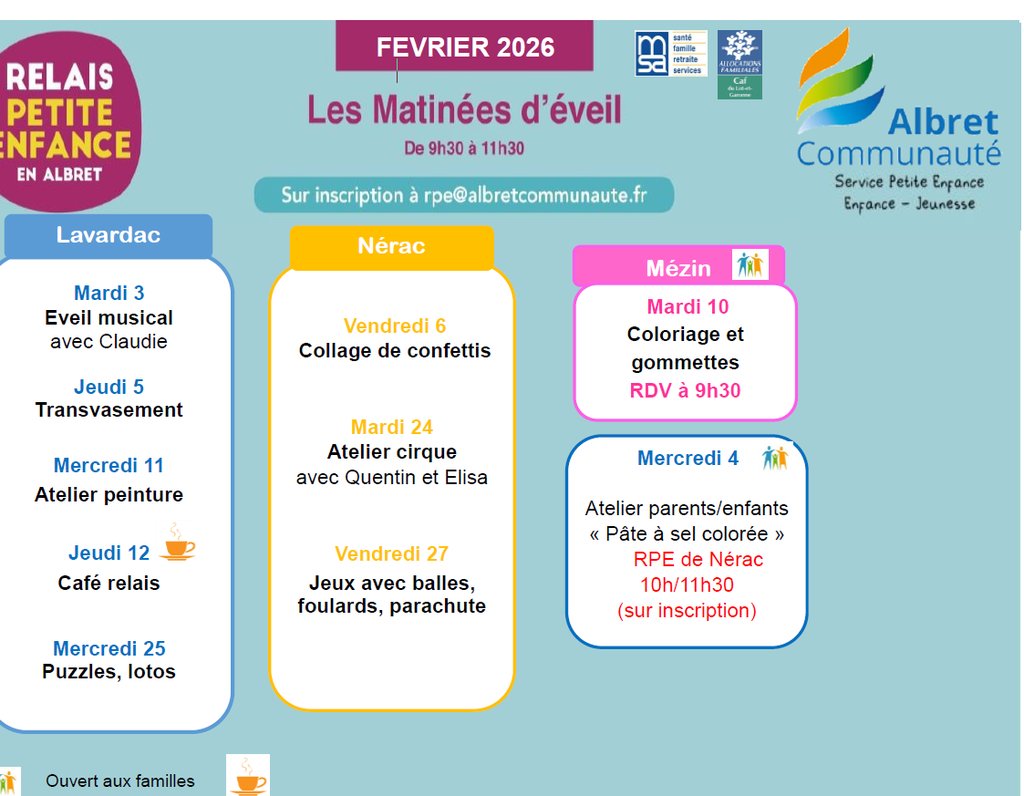Les matinées d’animation des Relais Petite Enfance de l’Albret sont ouvertes sur inscription.