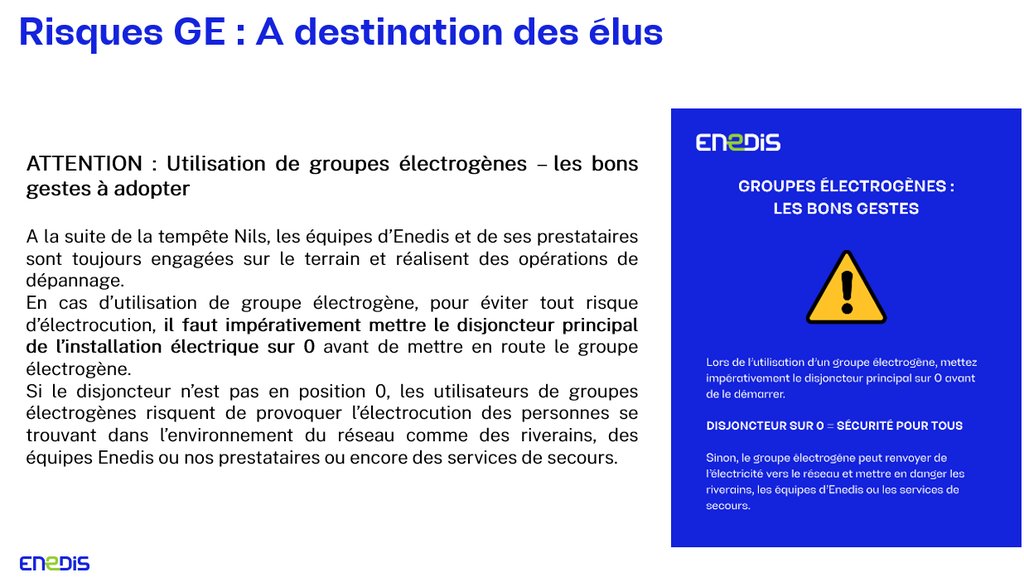 ENEDIS: MESSAGE SECURITE IMPORTANT - ATTENTION – UTILISATION DE GROUPES ÉLECTROGÈNES