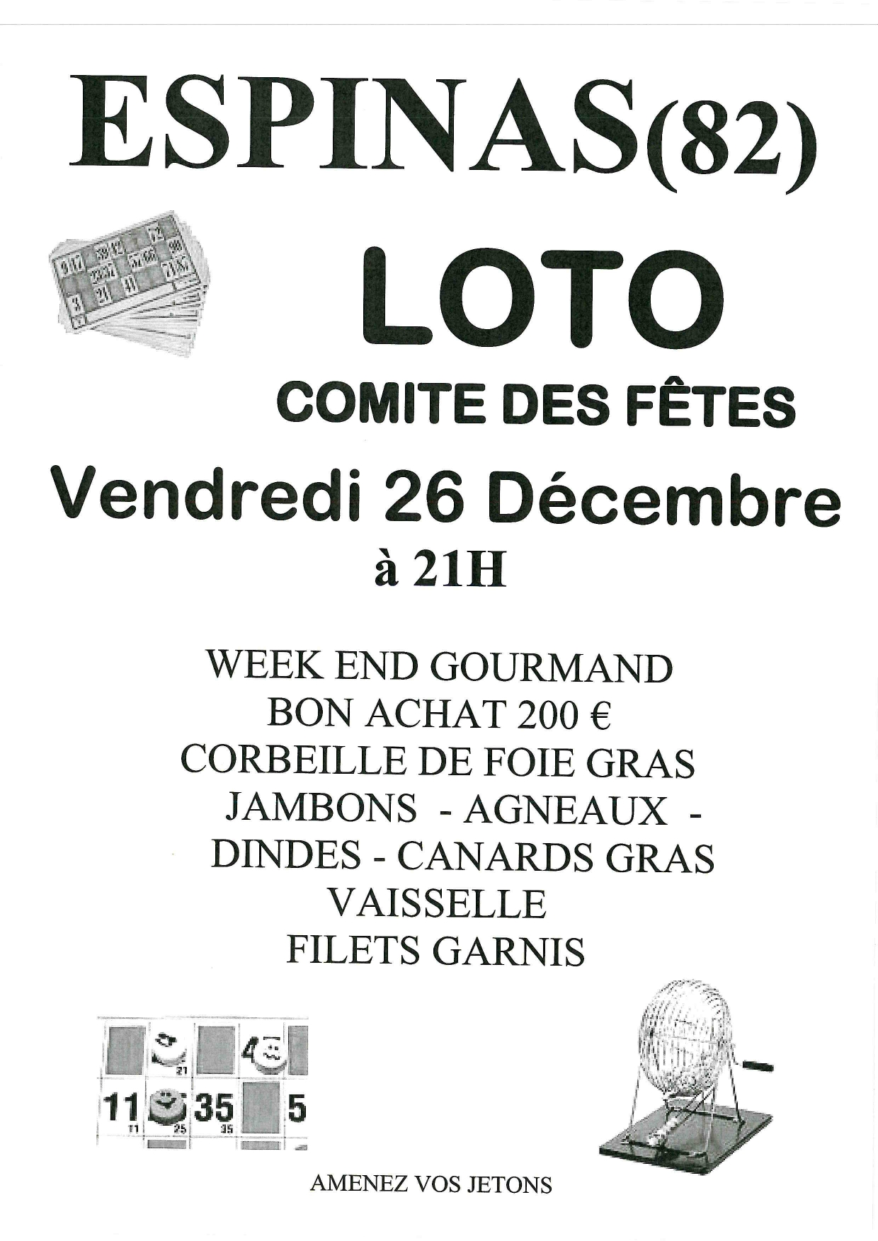 LOTO à ESPINAS - salle des fêtes- organisé par le comité des fêtes