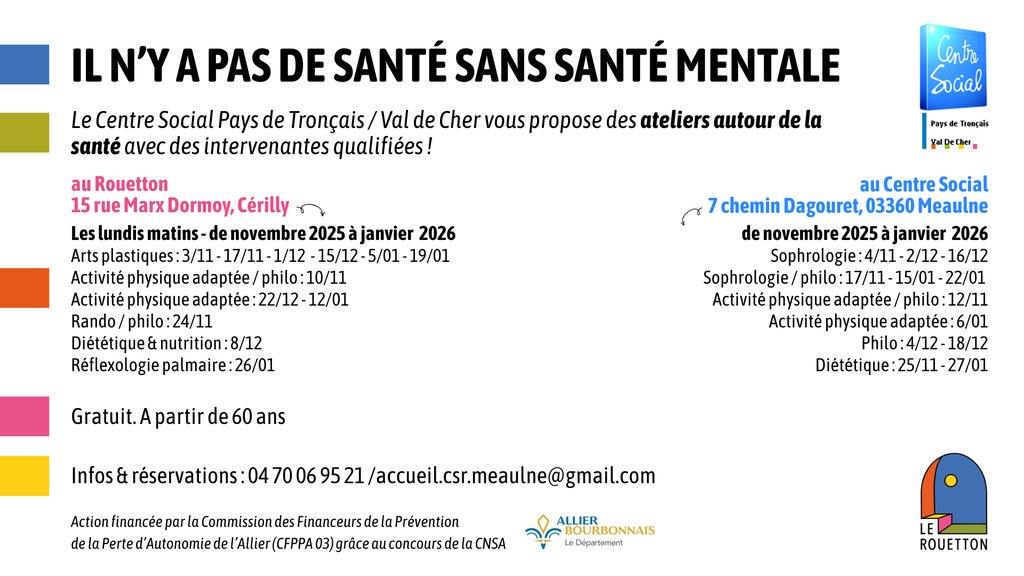 Infos & réservations auprès du Centre Social : 04 70 06 95 21