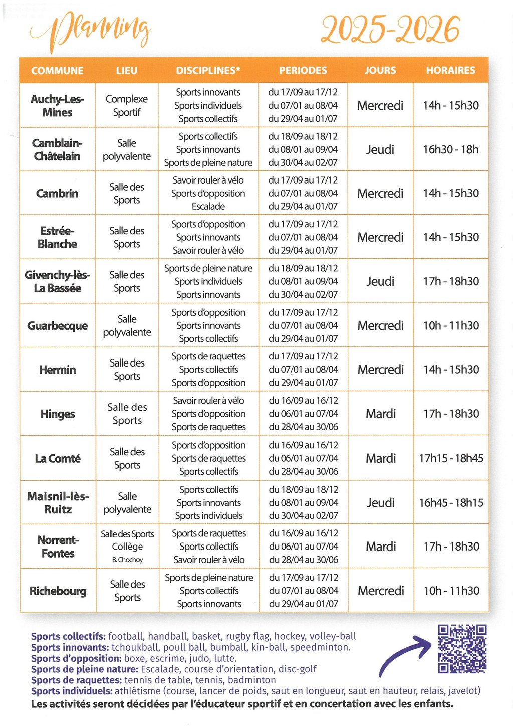 - du 07/01 au 08/04 : sports innovants (tchoukball, poull bal, bumball, kin-ball, speedminton)