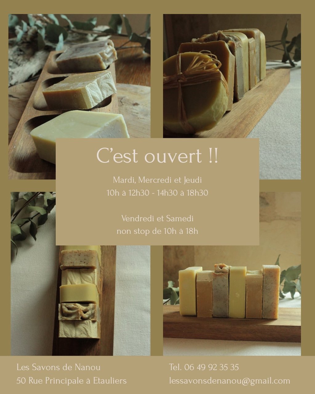 La savonnerie artisanale les savons de Nanou au 50 rue Principale à Etauliers est ouverte !