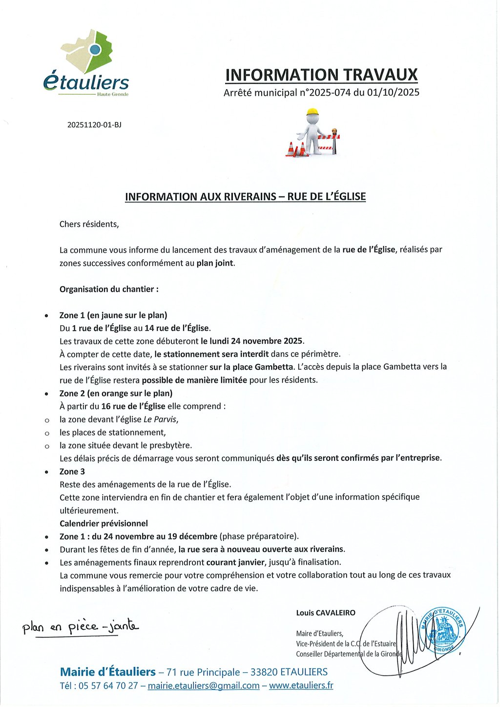 đ§ INFORMATION - TRAVAUX RUE DE L'EGLISE