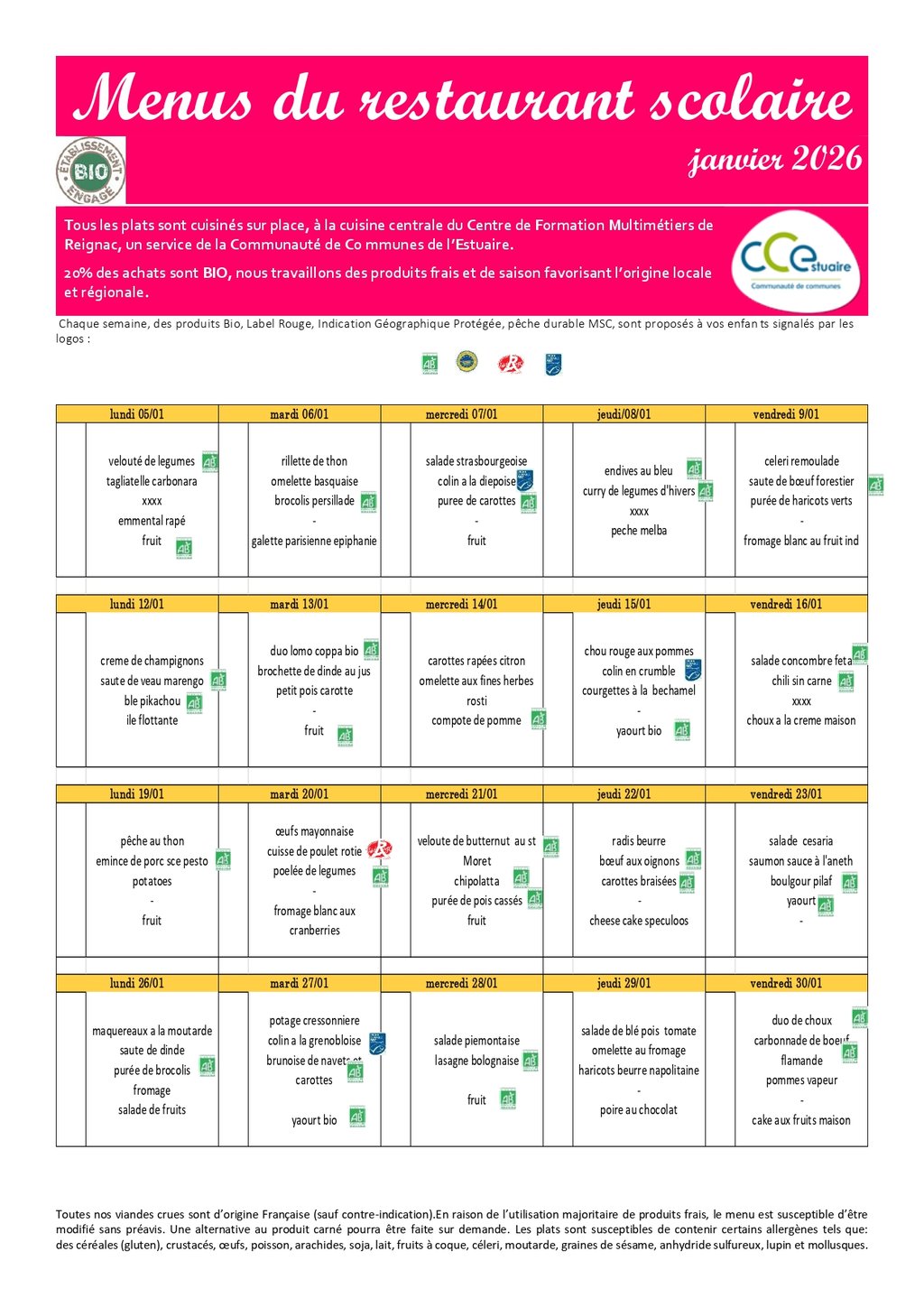 MENUS DES ÉCOLES DU MOIS DE JANVIER 2026