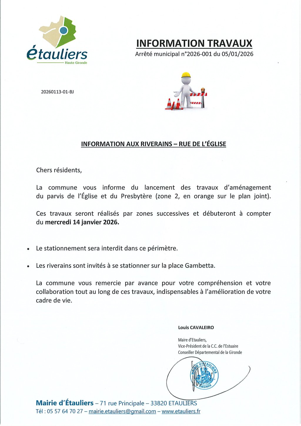 Début des travaux mercredi 14 janvier 2026 - 8h30.