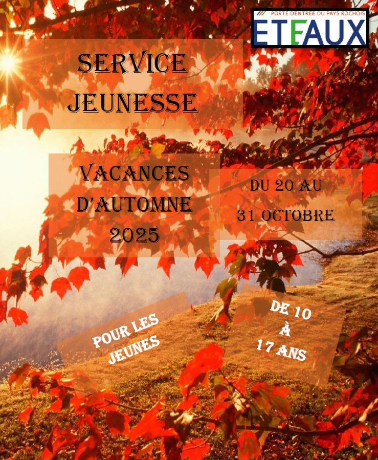 đinformations et dossiers en suivant le lien https://eteaux.fr/inscription-activites-jeunesse-10-17-ans-octobre-2025/