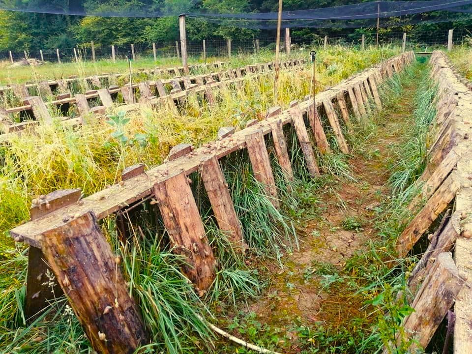 Exploitation et ferme d’élevage d’escargots de race Helix Aspersa Maxima dans des parcs en plein air. Ces “gros gris’” sont des escargots à la chair tendre.
