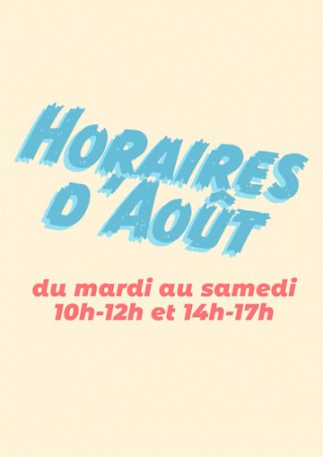 Retrouvez-nous du mardi au samedi de 10 h à 12 h et de 14 h à 17 h.