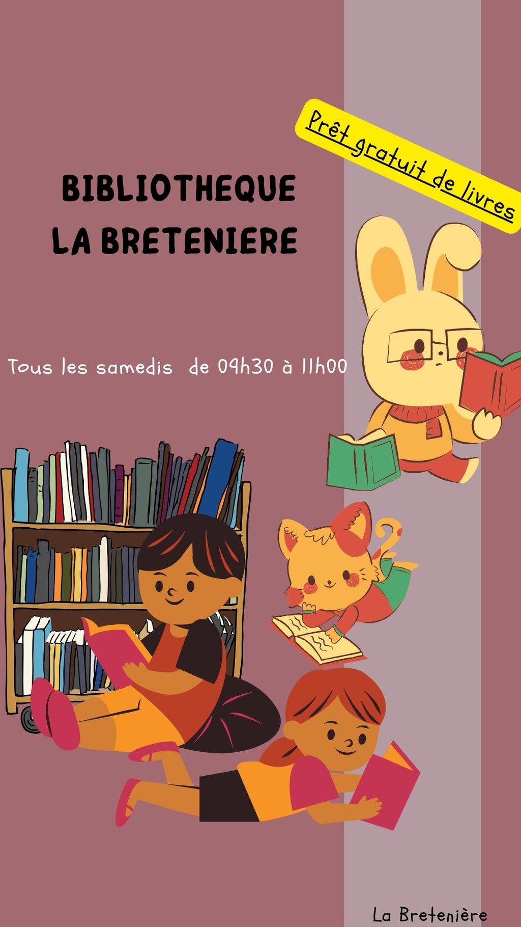 Depuis le 1er septembre 2025, la Bibliothèque de La Bretenière est ouverte tous les samedis de 9h30 à 11h00.