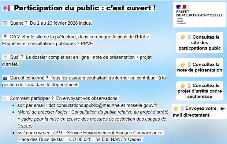 RÉVISION DE L'ARRÊTÉ CADRE SÉCHERESSE DE MEURTHE-ET-MOSELLE : PARTICIPATION DU PUBLIC