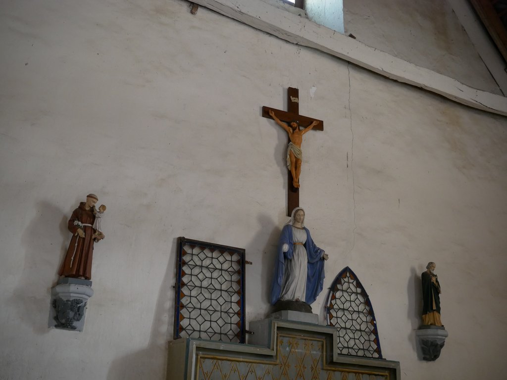 À l’intérieur, figure une balustrade en bois et un bénitier inclus dans le mur. Le retable (mise au tombeau du Christ) est conservé au musée Saint-Jean d'Angers. Sa reproduction est visible à l'église Saint-Hilaire d’Étriché.