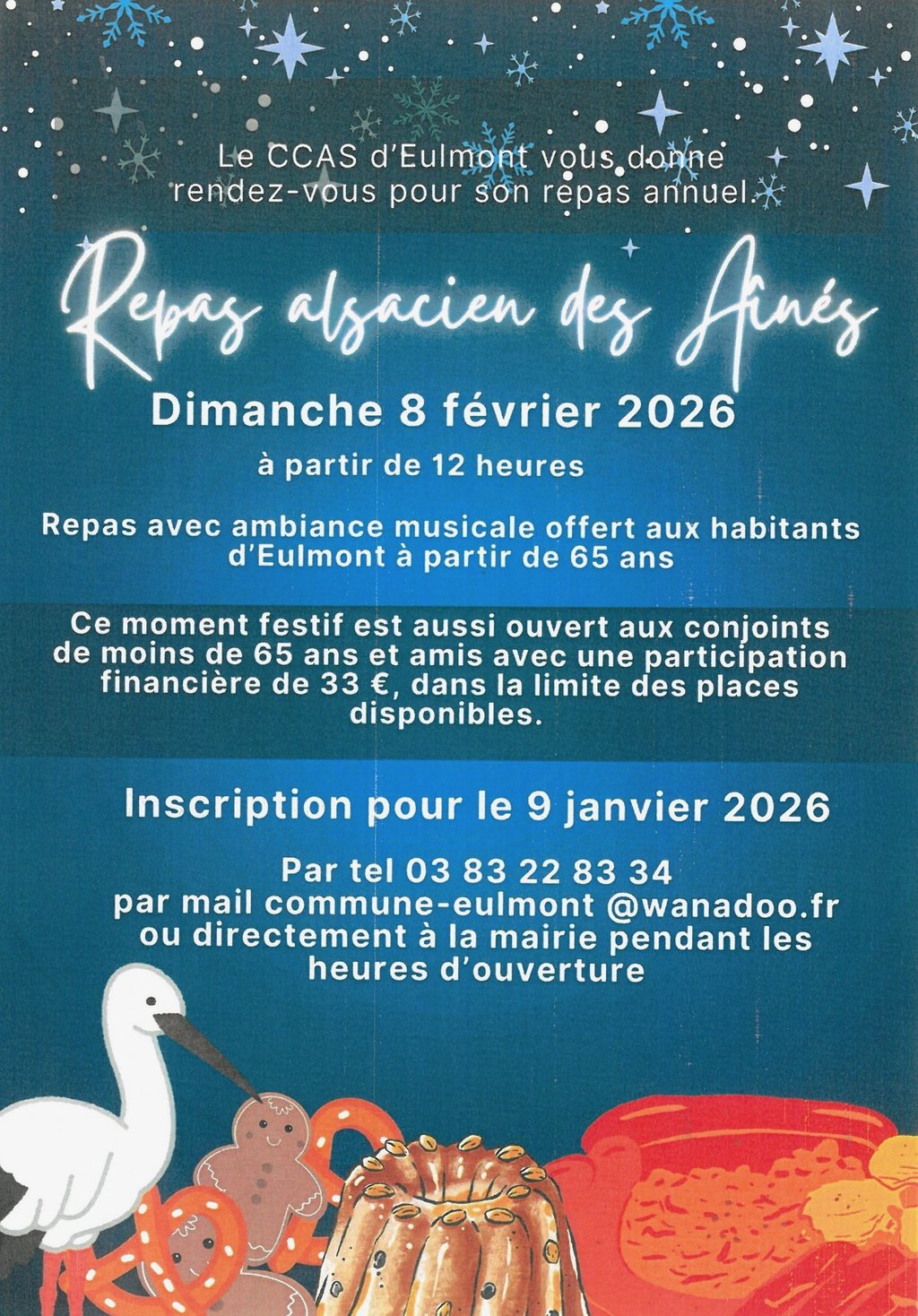 Repas alsacien des Ainés, avec ambiance musicale, offert aux habitants d'Eulmont, à partir de 65ans