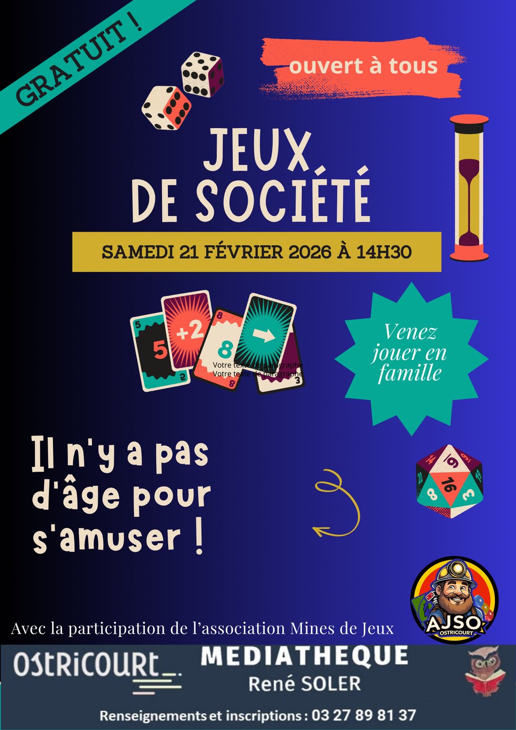 La médiathèque organise, avec l'association Ostricourt Mine de Jeux - AJSO, un après-midi jeux de société ! 🎲♟️