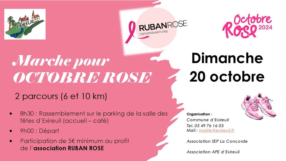 Organisation d'une marche au profit de l'association RUBAN ROSE dimanche 20 octobre 2024.