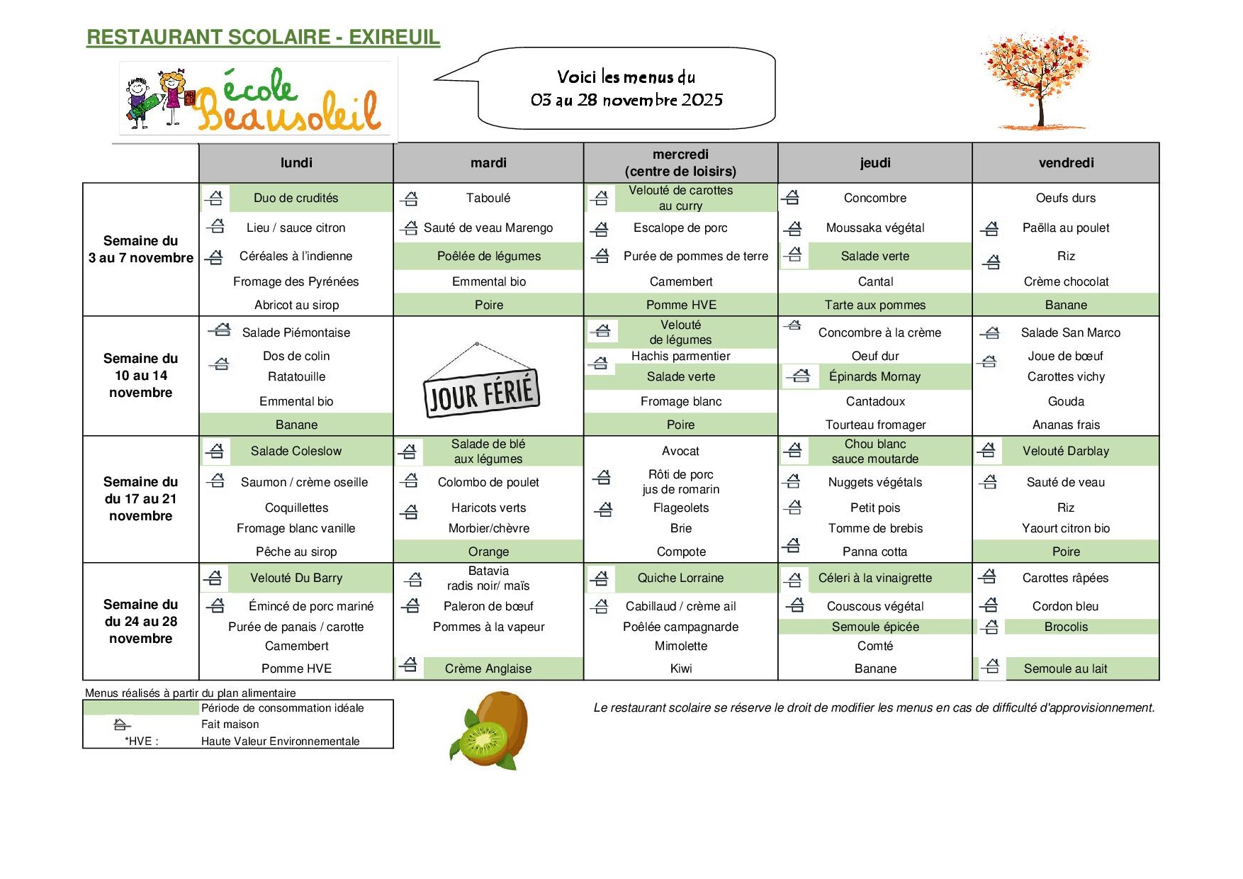 MENUS CANTINE SCOLAIRE - NOVEMBRE 2025