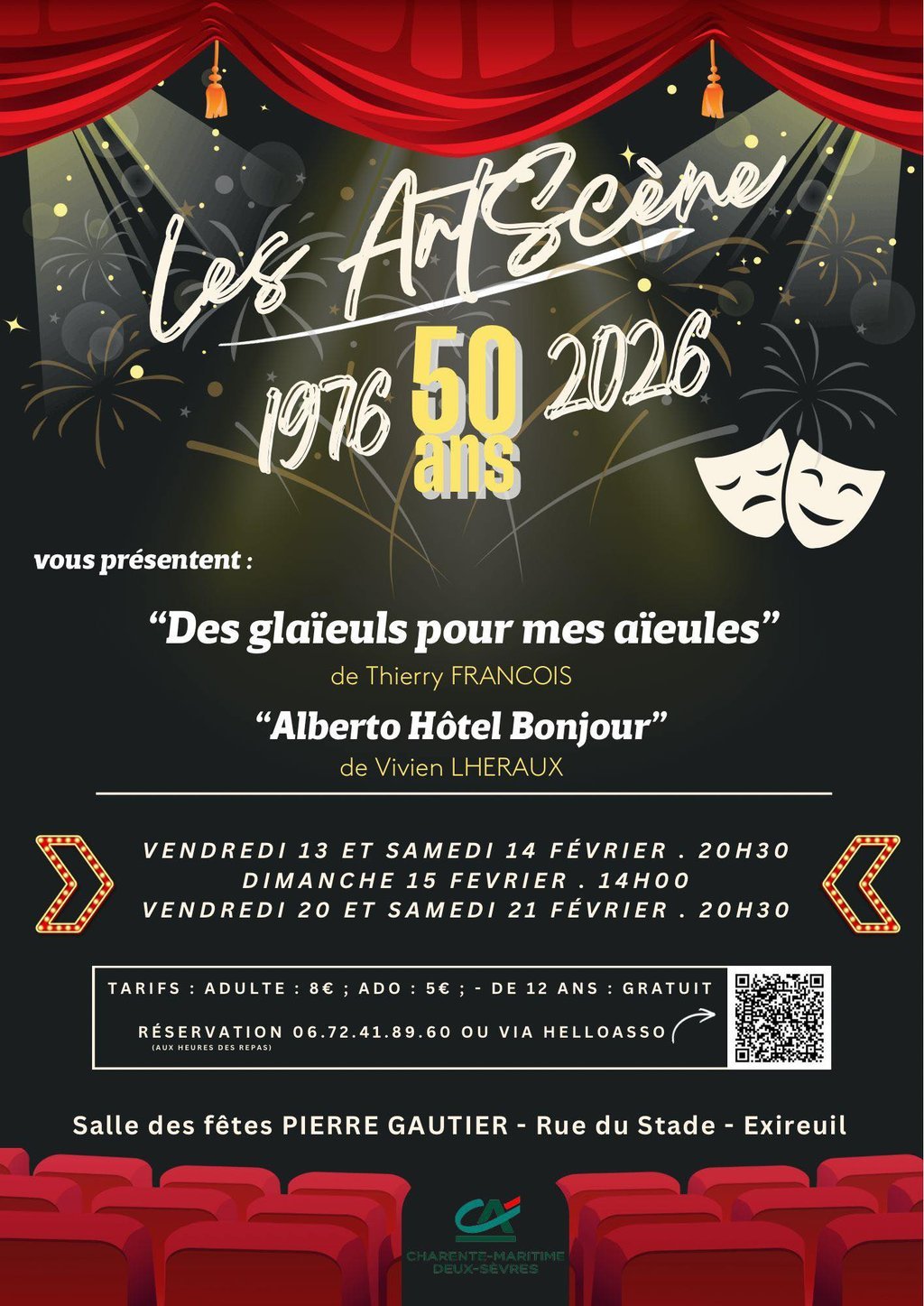 En 2026, la troupe de théâtre amateur d'Exireuil, Les Artscène, célèbre 50 années de passion, de rires et d’émotions partagées avec le public