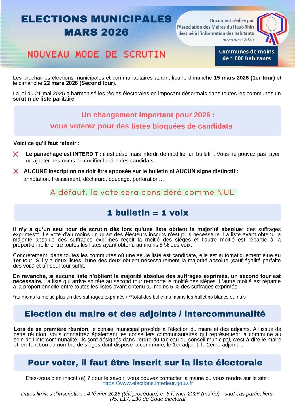 ELECTIONS MUNICIPALES 2026 : NOUVEAU MODE DE SCRUTIN