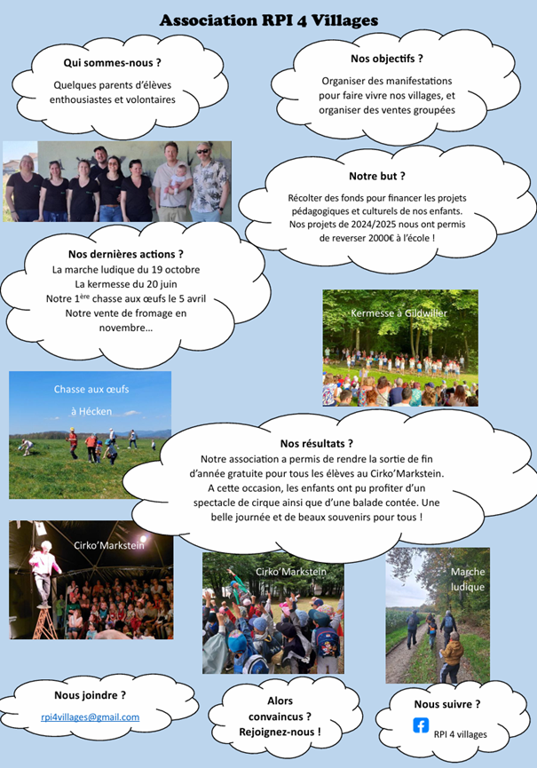 L'association du RPI des 4 villages (Diefmatten, Falkwiller, Gildwiller et Hecken) est composé de plusieurs parents d'élèves.
