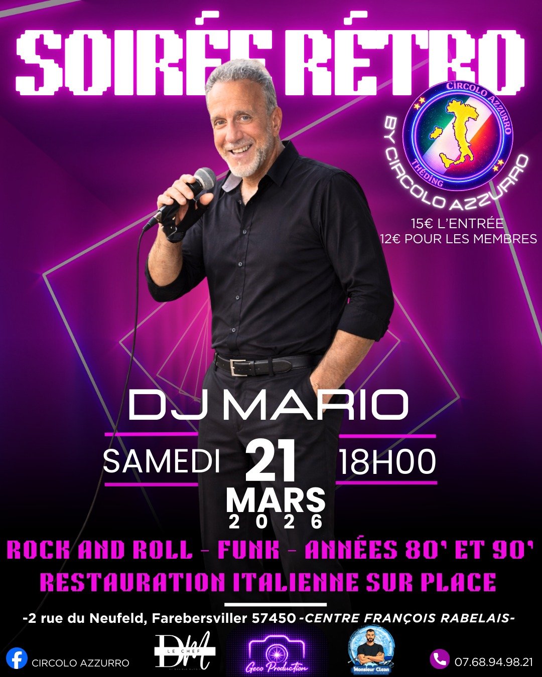 Aux platines : DJ Mario Stillato, qui vous fera revivre les plus grands classiques du rock’n’roll, du funk, et les incontournables des années 80 et 90. Une ambiance authentique pour un moment hors du temps, comme si les aiguilles de l’horloge s’étaient arrêtées sur les plus belles années…