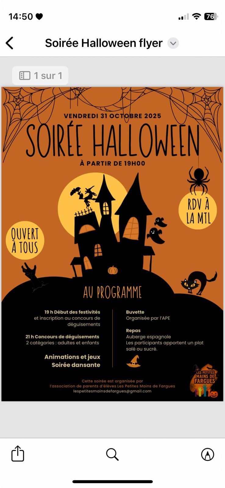 - Organisée par l’ Asso des parents d'élèves "Les petites mains de Fargues", le Vendredi 31 octobre 2025 à partir de 19h à la MTL