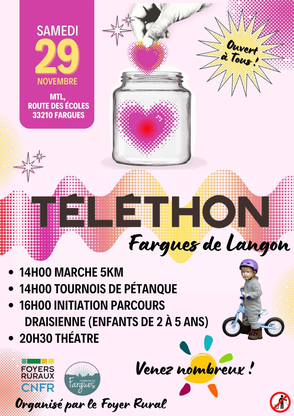 En cette fin d'année, le Téléthon arrive et le Foyer Rural ne déroge pas à l'organisation d'évènements en lien avec lui.