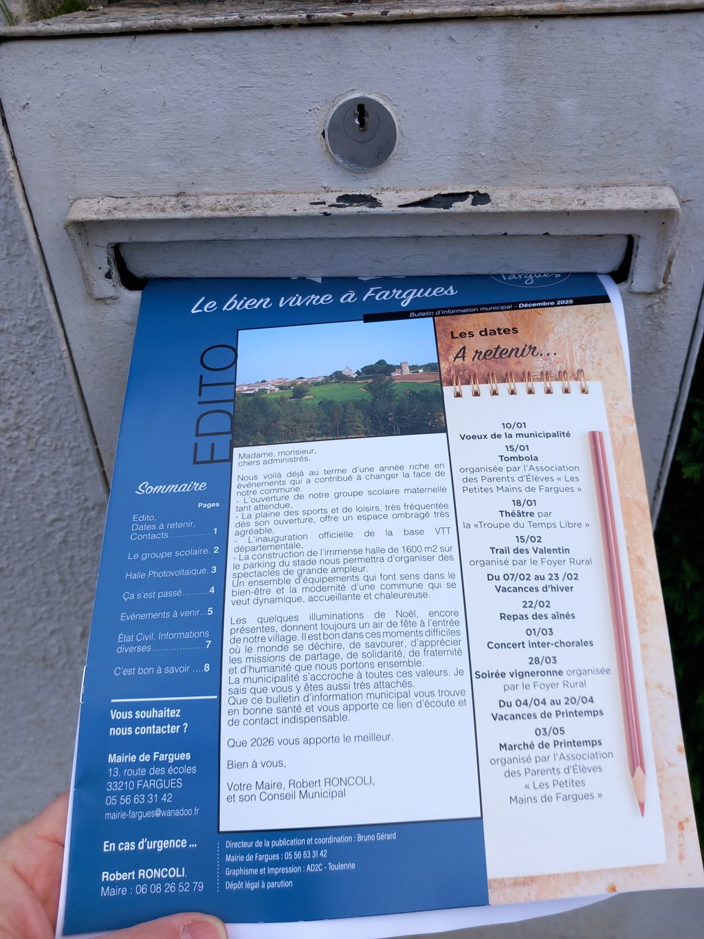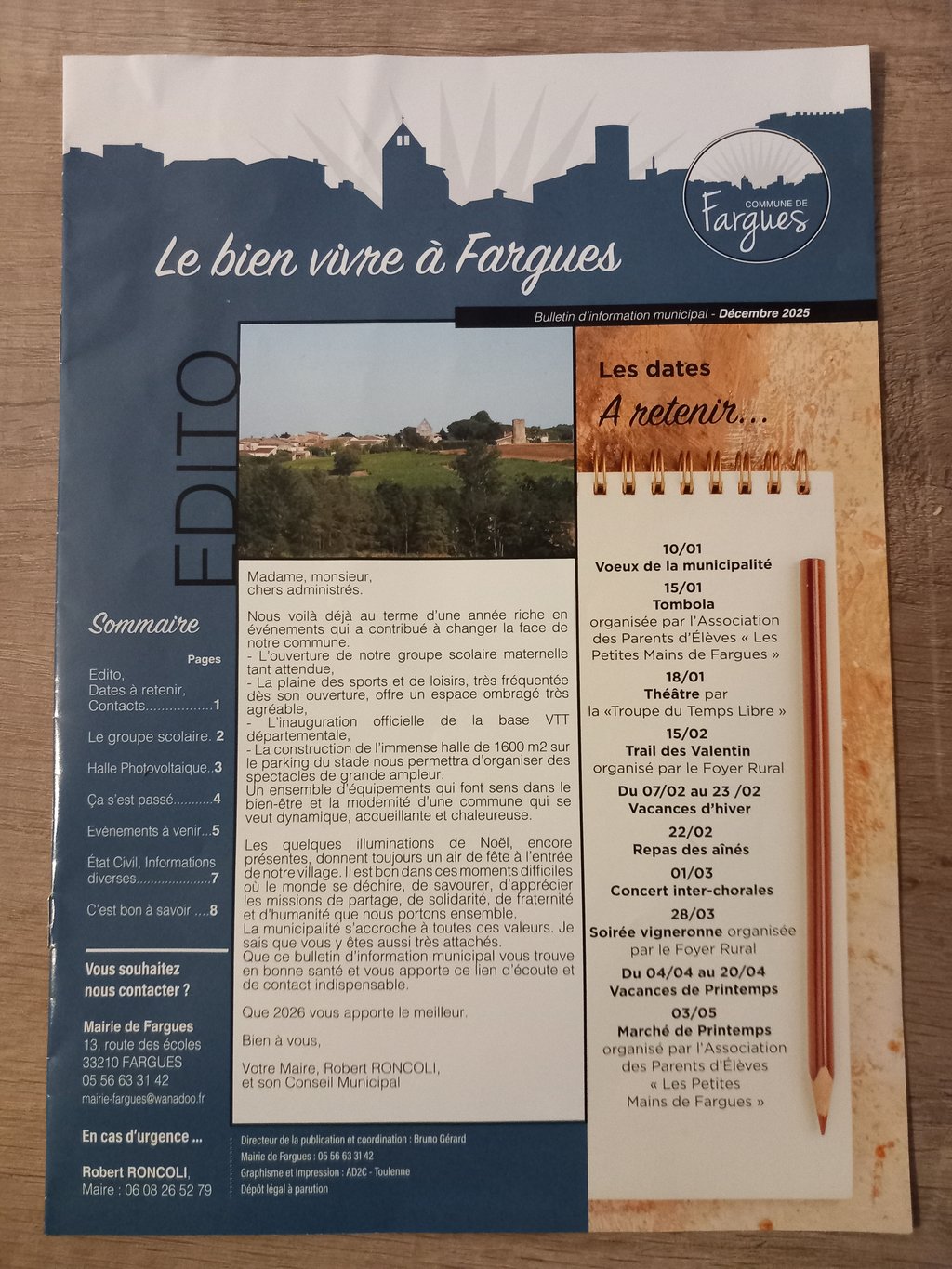 Il reprend, entre autres, le récapitulatif des évènements passés du dernier semestre 2025 et ceux à venir du 1er semestre 2026 dont l'invitation aux vœux du Maire le samedi 10 janvier à 11h.