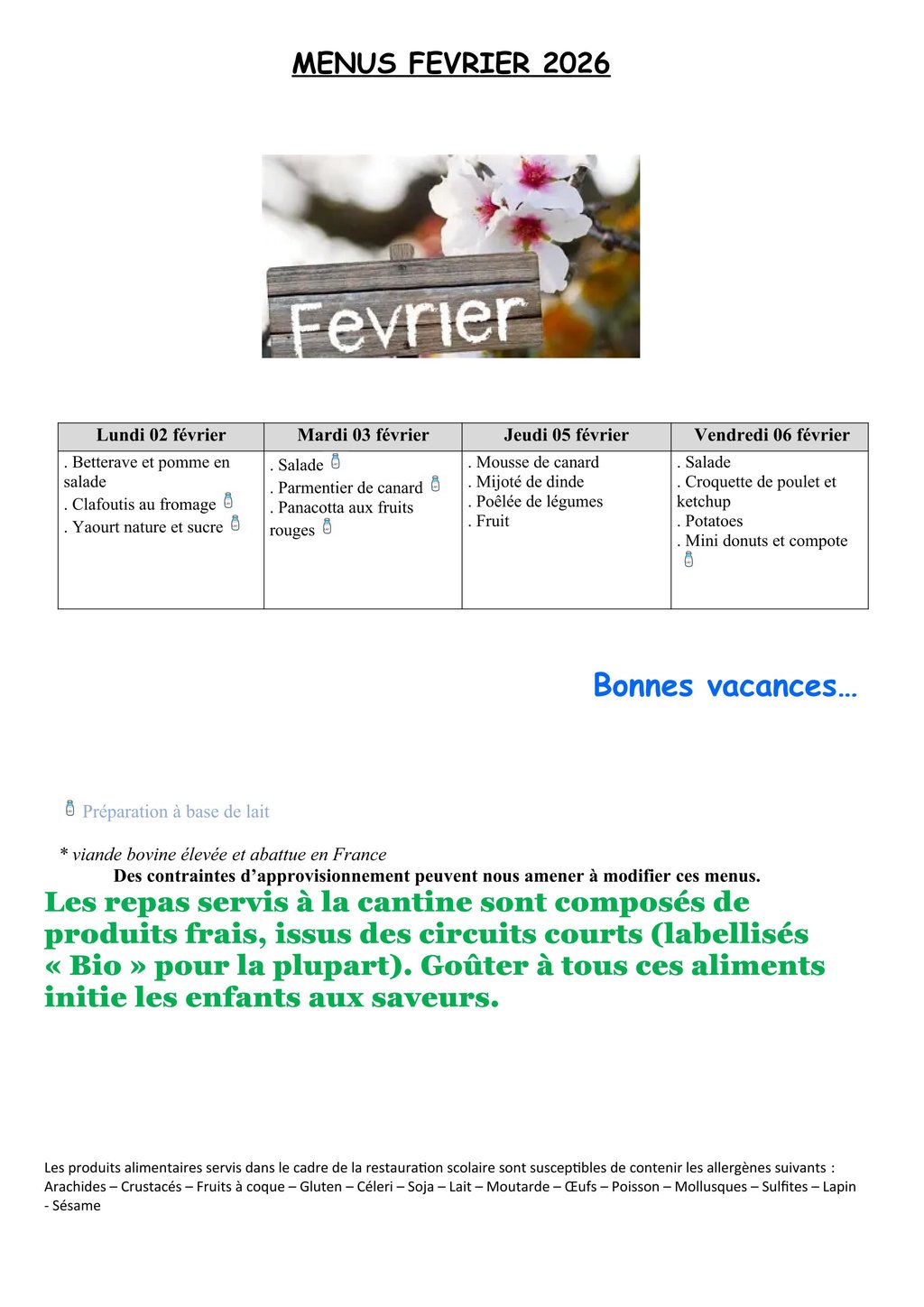 La rentrée scolaire de fin des vacances scolaires d'hiver a lieu demain, lundi 05 janvier 2026.
