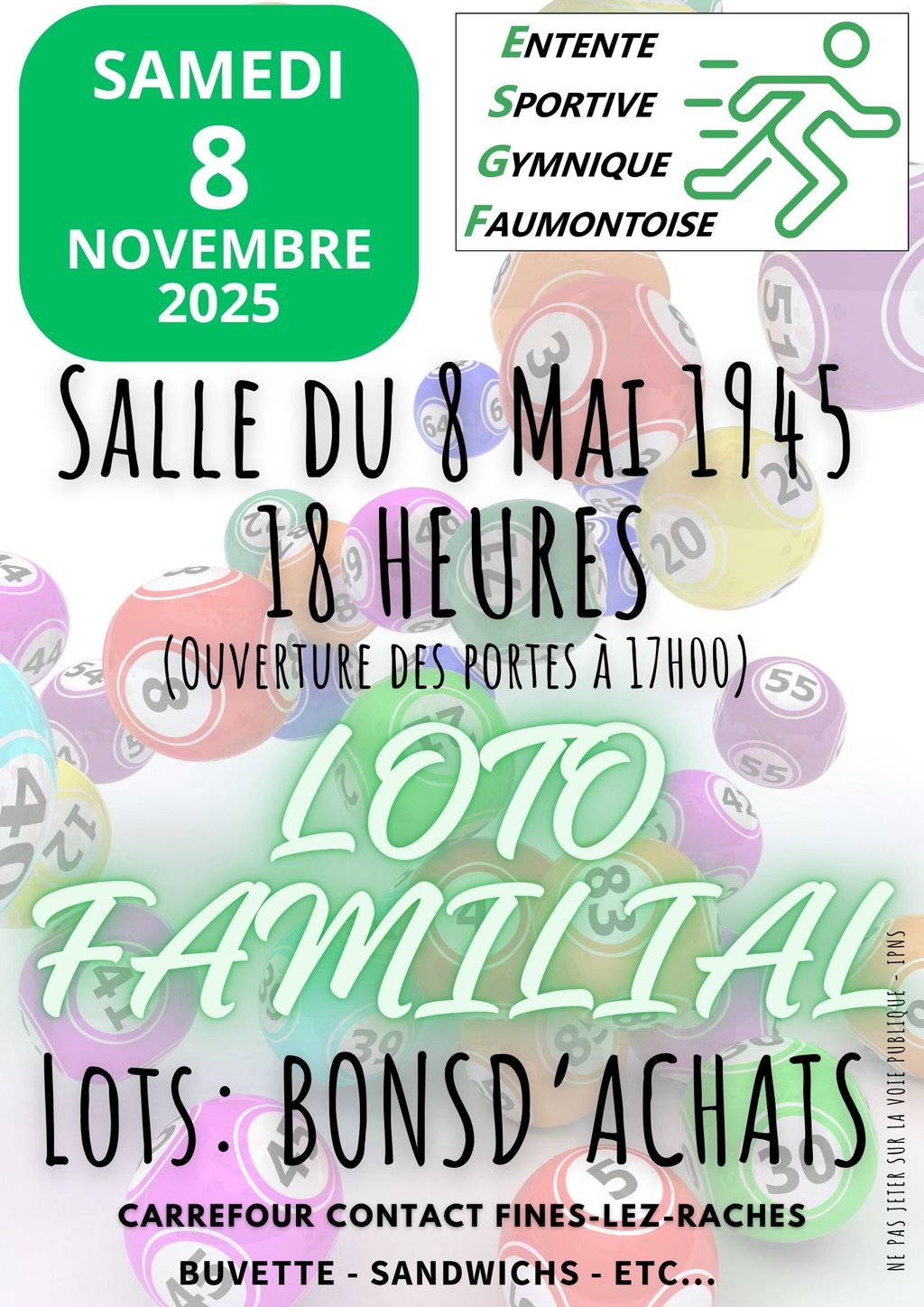 LâEntente Sportive Gymnique Faumontoise vous donne rendez-vous le samedi 8 novembre 2025, Ă partir de 18h, pour son traditionnel loto familial, organisĂ© Ă la salle du 8 Mai 1945.