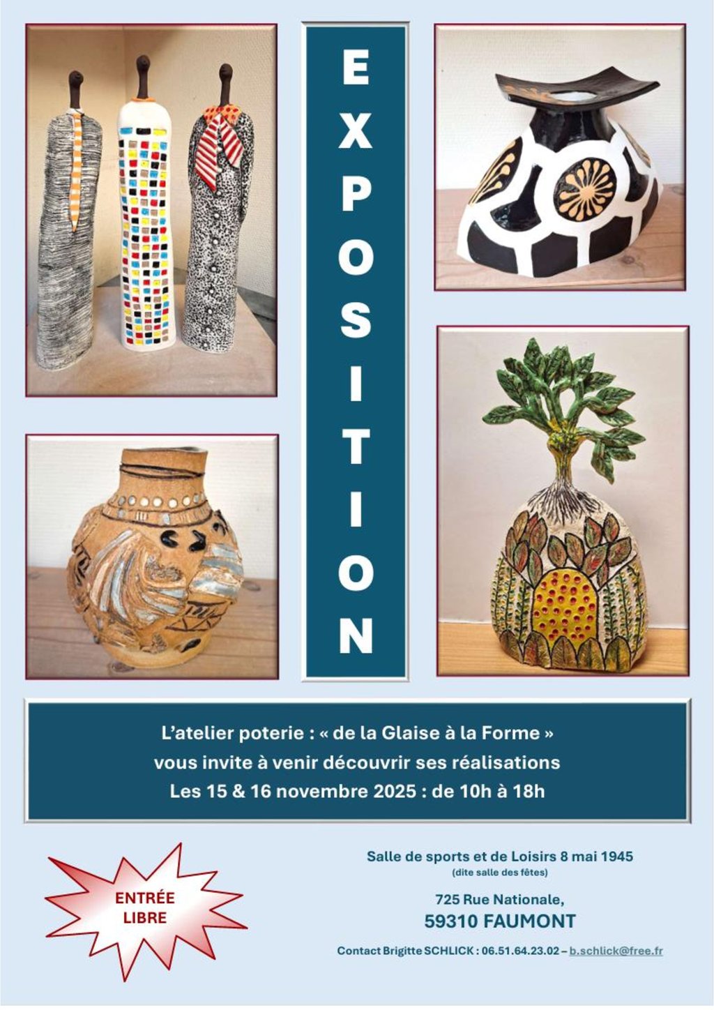 L'atelier poterie présentera ses créations originales à la salle des fêtes du 8 mai 1945 les Samedi 15 et Dimanche 16 Novembre de 10h à 18h. De belles découvertes en perspective!