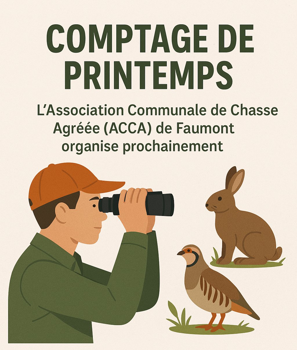 L’Association Communale de Chasse Agréée (ACCA) de Faumont organise prochainement son comptage de printemps, un rendez-vous essentiel pour le suivi de la faune locale...