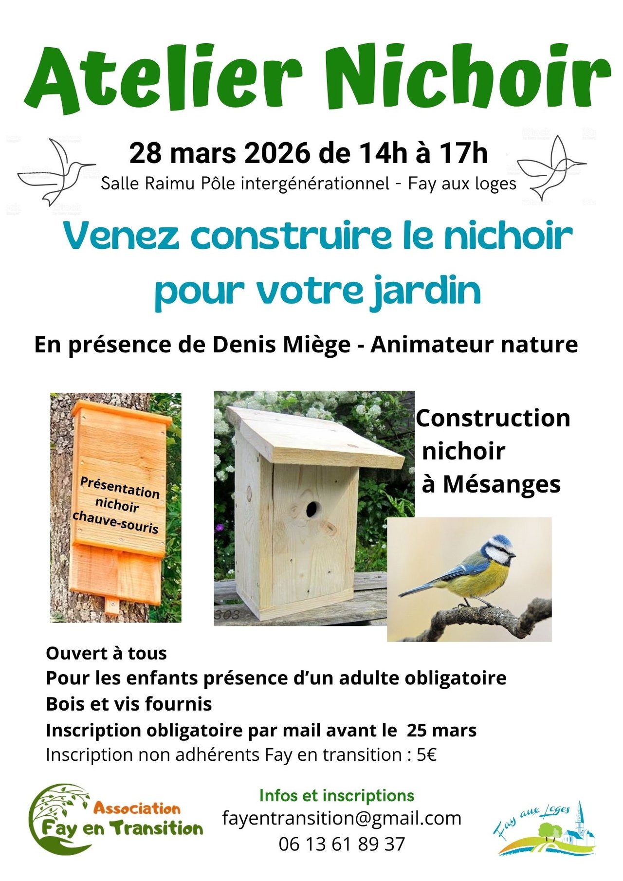 🐦 Venez construire notre nichoir pour votre jardin en présence de Denis Miège, animateur nature.