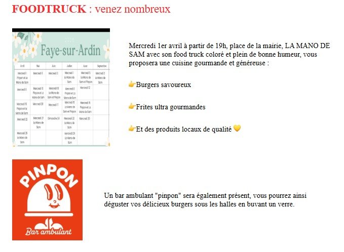 Mercredi 1er avril à partir de 19h, place de la mairie, LA MANO DE SAM avec son food truck coloré et plein de bonne humeur, vous proposera une cuisine gourmande et généreuse. Le bar ambulant "PINPON"sera également présent
