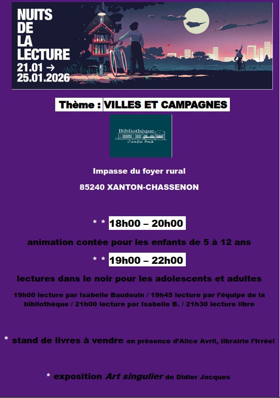 Prochains temps forts organisés à la bibliothèque de Xanton-Chassenon :