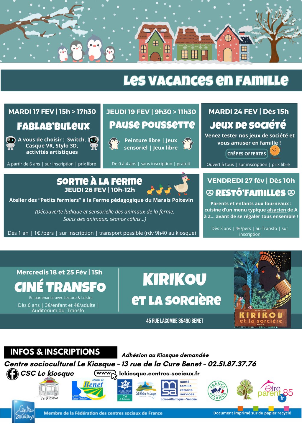 Vous trouverez sur l'affiche jointe le programme des vacances de février au Kiosque.