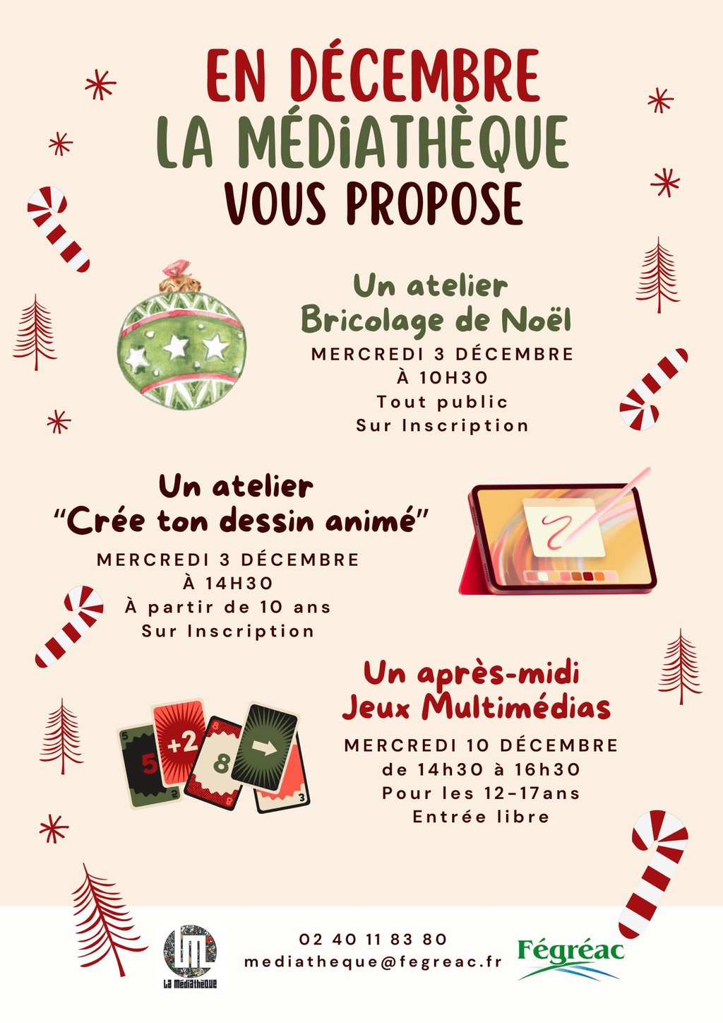 Nous vous attendons les mercredis 3 et 10 décembre à La Médiathèque pour préparer Noël en s'amusant !