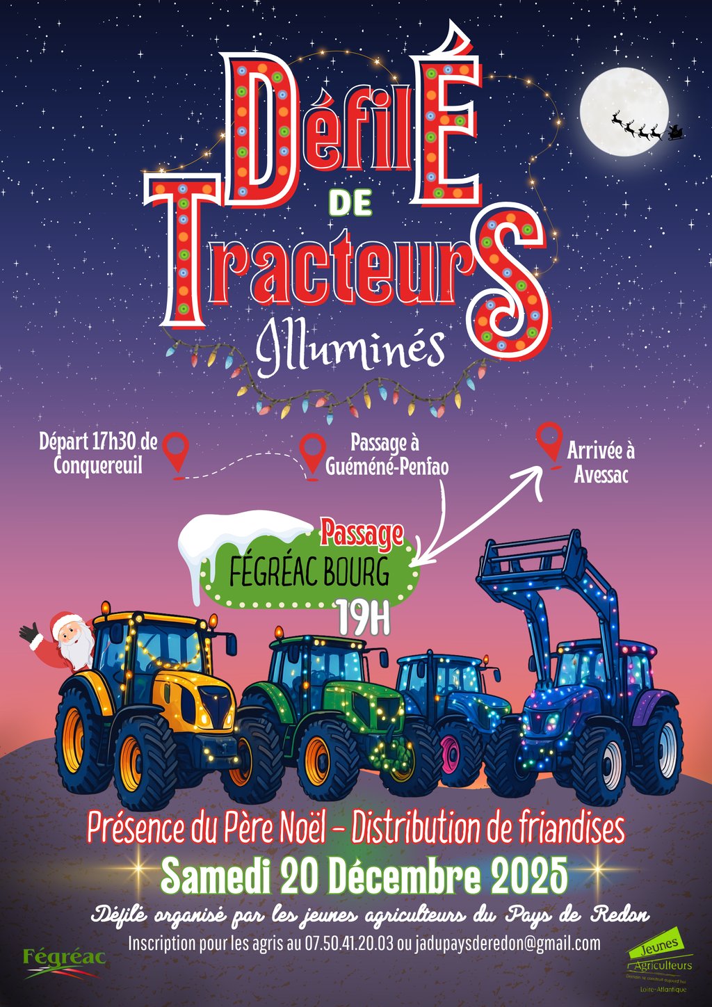 Défilé de tracteurs illuminés dans le centre bourg et arrivée à la salle des sports de Fégréac organisés par les jeunes agriculteurs