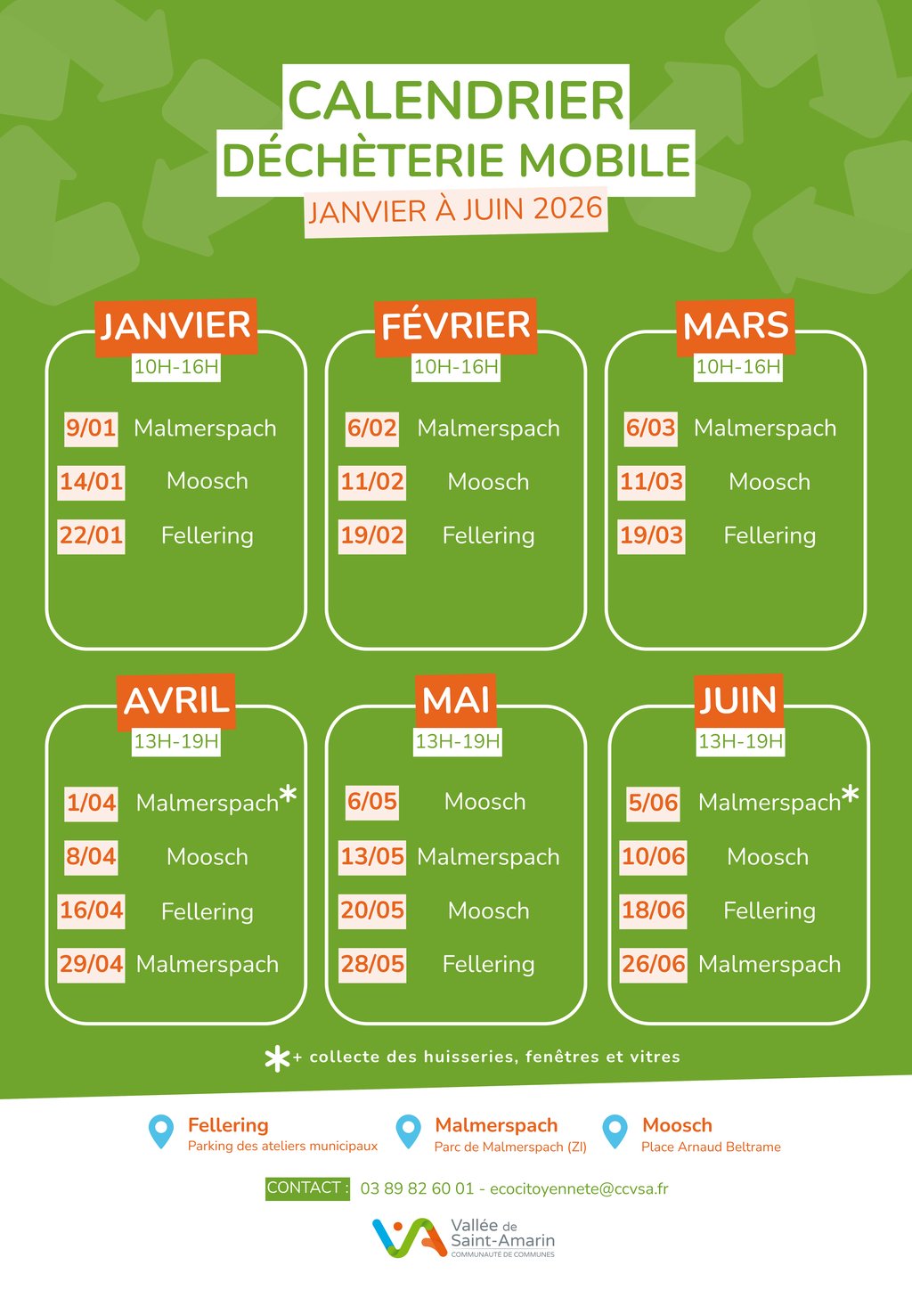 CALENDRIER DÉCHÈTERIE MOBILE - DE JANVIER À JUIN 2026