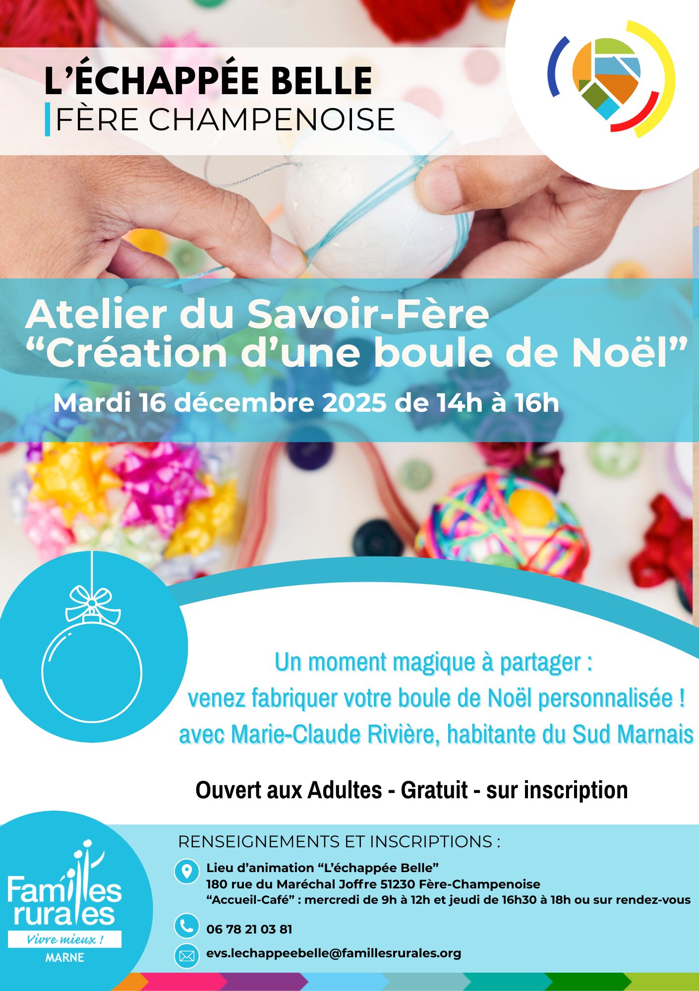 Laissez libre votre imagination, Marie-Claude Rivière saura vous guider dans la création de votre boule de Noël personnalisée !