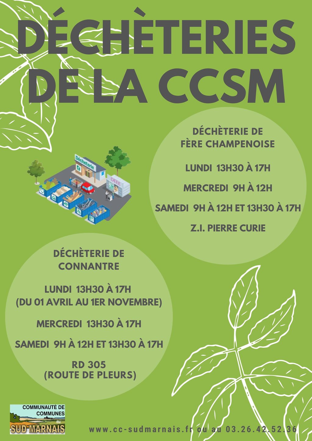 HORAIRES DES DÉCHÈTERIES DE LA CCSM