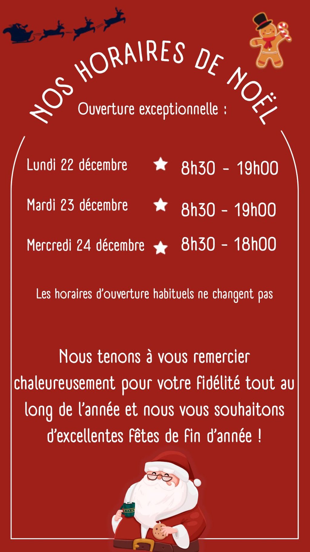 NOS HORAIRES DE NOËL !