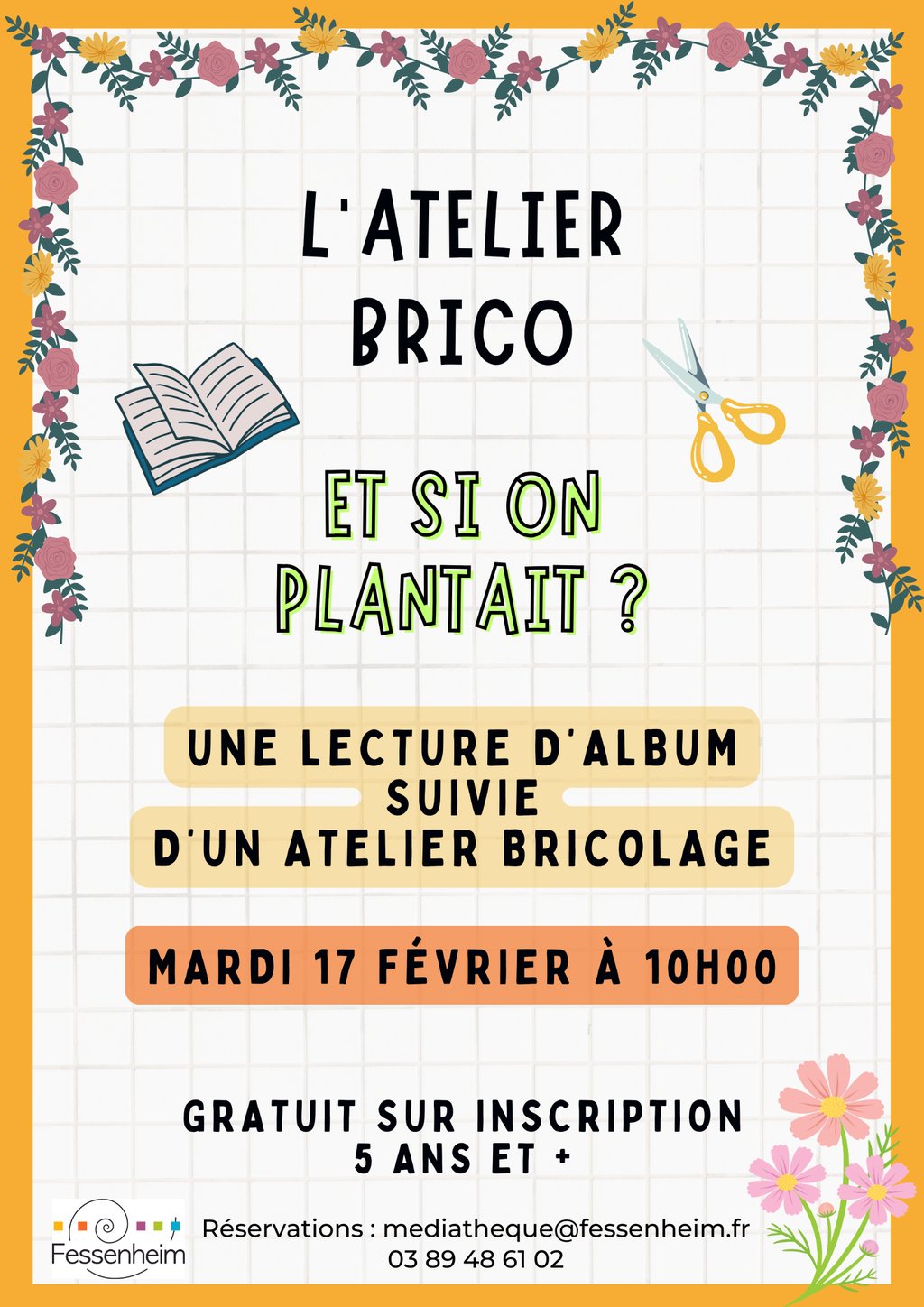 Pendant les vacances, la médiathèque propose un atelier bricolage sur le thème des fleurs, destiné aux enfants à partir de cinq ans. Cet atelier créatif, précédé d’une lecture d’album, permettra aux participants de laisser libre cours à leur imagination tout en réalisant des créations colorées et originales autour de l’univers floral.