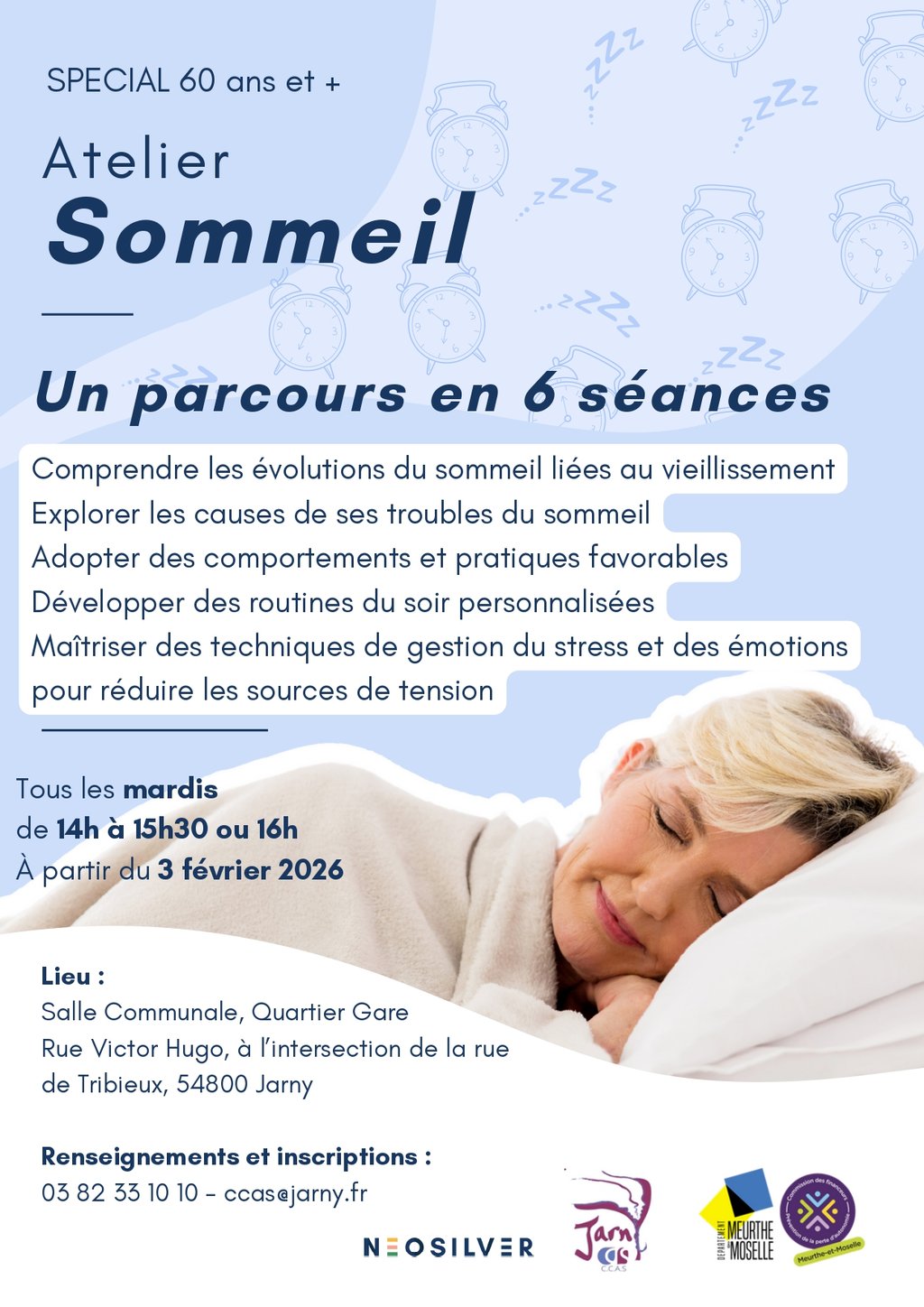 đŽâš Mieux dormir, ça sâapprend Ă tout Ăąge ! Le CCAS de Jarny propose des ateliers spĂ©cialement conçus pour les + de 60 ans afin de :
