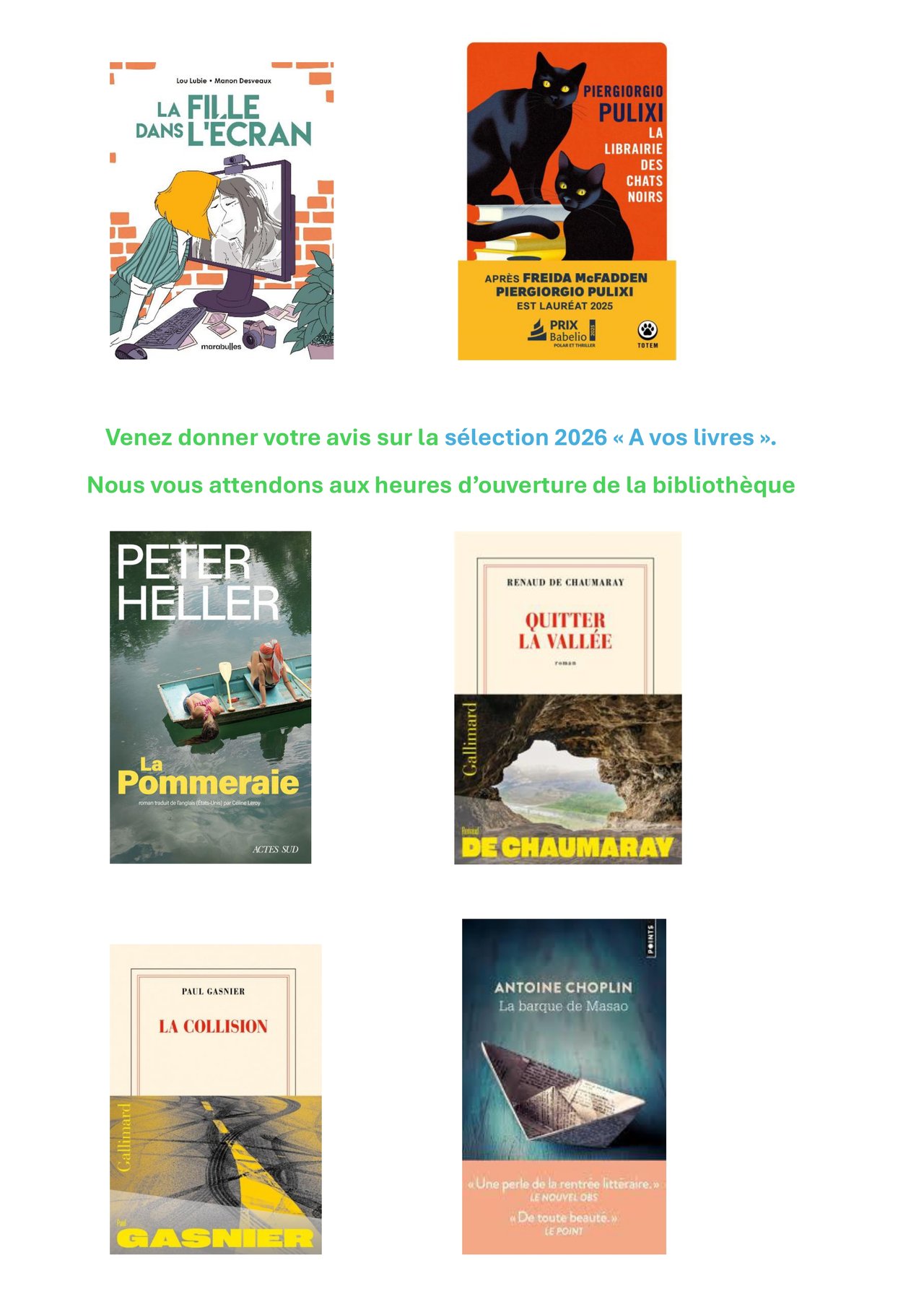 N’hésitez pas à rejoindre la liste des 600 abonnés et venez découvrir les nouveautés, les coups de cœur des lecteurs, et le sourire des bénévoles qui vous accueilleront toujours avec plaisir …