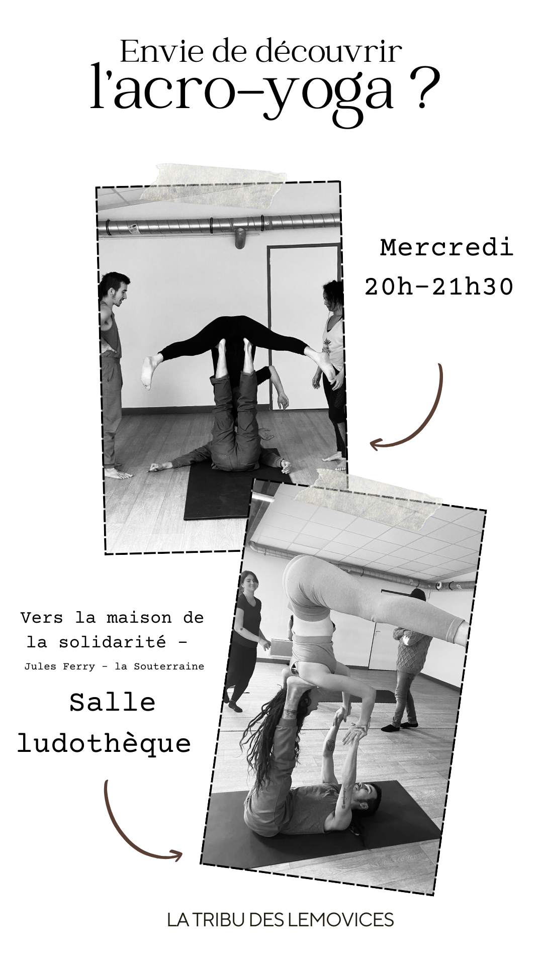 - cours d’acroyoga le mercredi de 20h à 21h30
