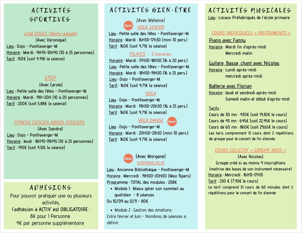 Activités Loisirs :