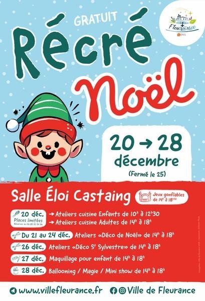 En parallèle des nombreuses manifestations qui rythmeront le mois de décembre, « Récré Noël » sera comme toujours au rendez-vous du 20 au 28 décembre (fermeture le 25) avec des structures gonflables, des spectacles de magie et divers ateliers gratuits.