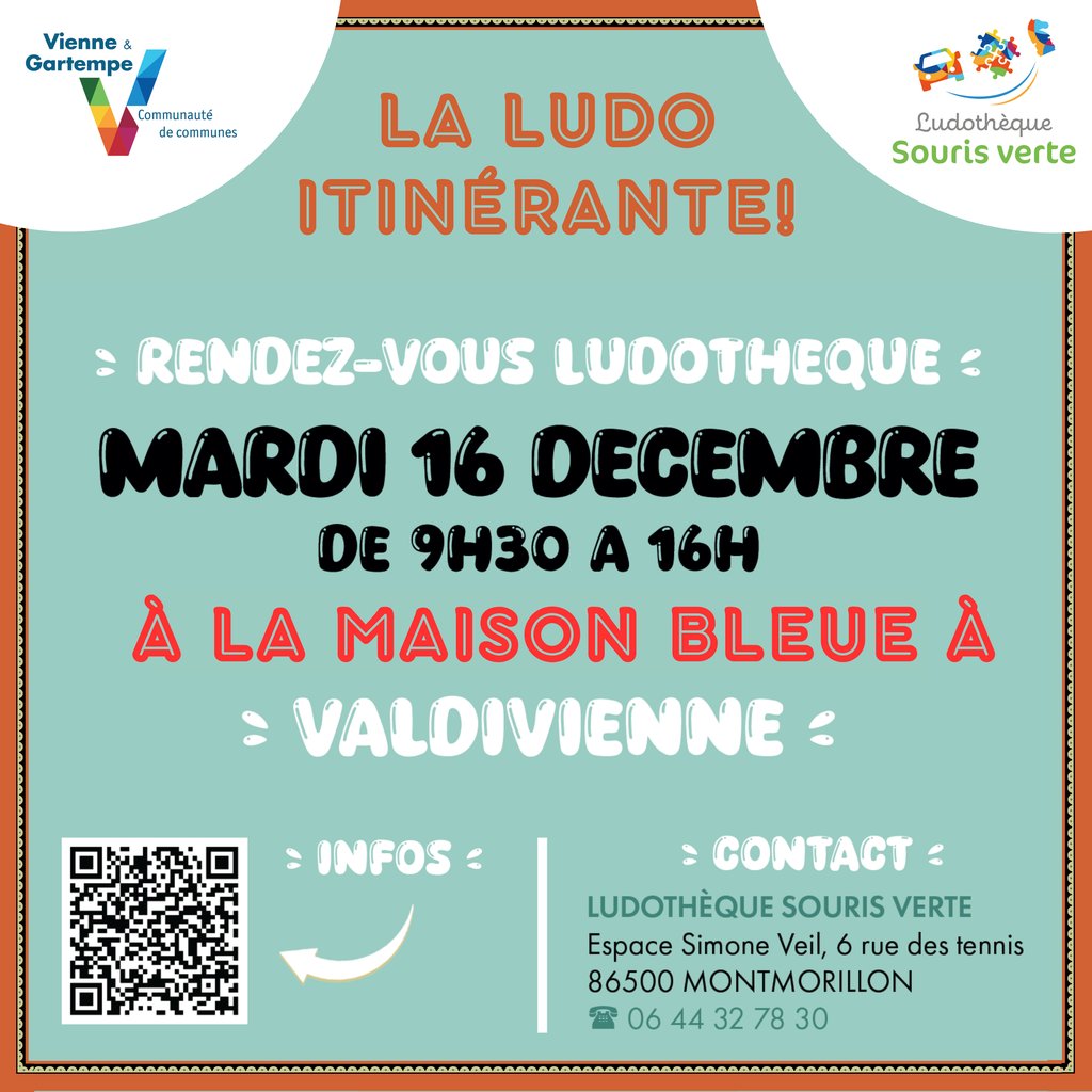 Aujourd'hui la ludothèque itinérante se trouve à Valdivienne mais en raison du marché de Noël qui se tient à la salle des fêtes, Charline vous invite à la rejoindre sur le parking de la Maison Bleue pour échanger des jeux!